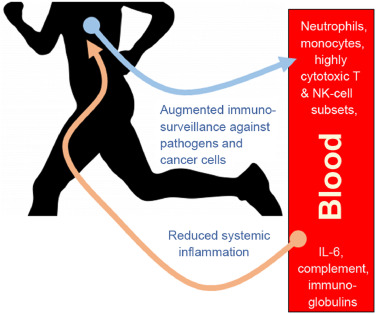 When indicators of the immune system and inflammation are measured in the blood, a single bout of exercise appears to provide have an anti-inflammatory effect and improves regulation of the immune system. This is because exercise increases the number of cells in the blood that fight off infections. Even walking for 30 minutes can have an effect. And while the effects seem to diminish with age, older adults still derive some benefit.